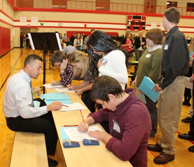 This is a way for businesses to touch the lives of approximately 600 students in one day. Volunteers are seated at various stations where each student will have monthly expenses extracted from their paycheck. Students get a real dose of “REALITY” that day, which helps them better plan for their future!